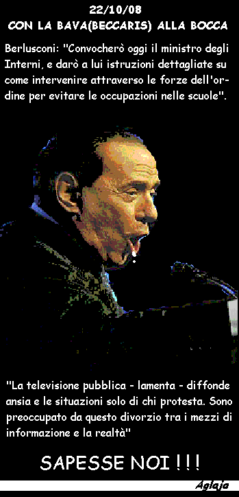 Cara Aglaja, Sono entrato in possesso del testo delle istruzioni dettagliate date da Berlusconi a Maroni: "Uno, due, tre, viva Mariasté! Quattro, cinque, sei, morte ai licei! Sette, otto, nove, la Diaz non commuove!" (musica di Mariano Apicella) Ciao da Marcello Teofilatto
